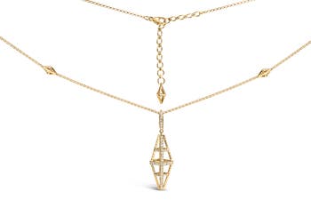 Haus of Brilliance 14K Yellow Gold 1.0 Cttw Diamond Studded Geometric Double Pyramid Pendant Necklace, Alternate, color, Yellow