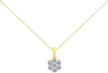 14K Yellow Gold 1.00 Cw Diamond 7 Stone Floral Cluster Pendant Necklace