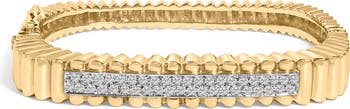 14K Yellow Gold 1 1/4 Cttw Diamond Ribbed Rounded Rectangle Bangle Bracelet