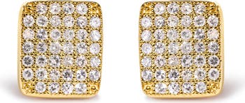 14K Yellow Gold 1/2 Ct Diamond Square Shaped Composite Cluster Stud Earrings