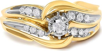 14K Yellow Gold 1/4 Cttw Round Diamond Wave Motif Bypass Ring
