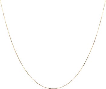 This delicate 14K yellow gold diamond cut moon chain adds subtle sparkle with its slim 1mm design and classic 16 inch length. Lightweight and refined, it offers an effortless accent whether worn alone or layered with your favorite necklaces.