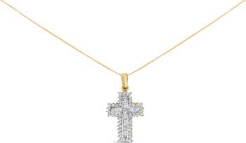 14K Yellow Gold 2.0 Cttw Multi-Row Diamond Cross Pendant Necklace