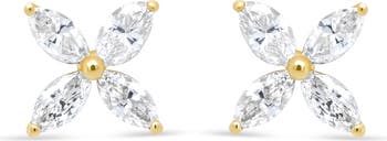 14K Yellow Gold 3/4 Ct Marquise Diamond 8 Stone Floral Leaf Stud Earrings