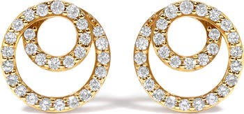 14K Yellow Gold 3/8 Cttw Diamond Double Circle Stud Earrings