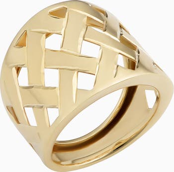 Our lattice-style Basket Weave Ring is a sculptural work of art. Thick bands of solid gold cross over and under to form this statement-making piece. Put it on for special occasions, or make it a part of your everyday look -- you're calling the shots.