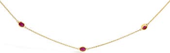 14K Yellow Gold Bezel Set 4x3 mm Oval Red Ruby Station Necklace