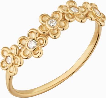Our Blossom Ring showcases a series of flower motifs, each petal expertly crafted to capture and reflect light. At the center of each bloom lies a sparkling cubic zirconia stone, adding a touch of brilliance. This ring combines timeless floral elegance with modern craftsmanship, making it a perfect addition to any ensemble