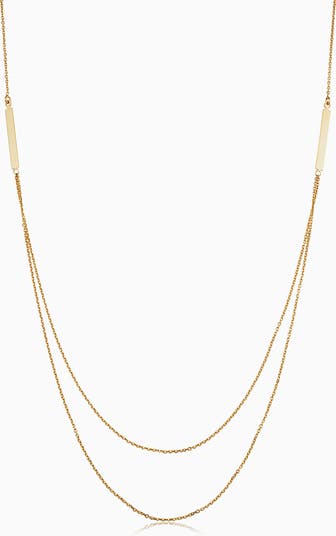 Minimalism meets glamour in our Brooklyn Bar Layered Necklace. Two petite gold bars sit symmetrically, connected by two elegant chains that drape to form the necklace’s layers.