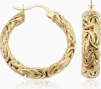 This intricately woven style of jewelry dates back centuries and was worn as a symbol of status and power. We've taken this classic design and given it a modern polished spin. Put on our Byzantine Classic Hoops to elevate any look.