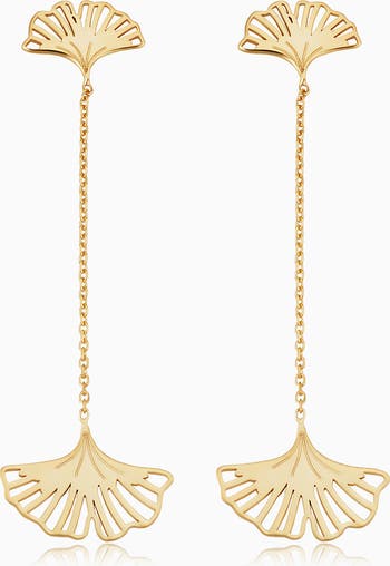 Dress up your everyday looks with the fun flare of our Carnevale Drop Earrings. Intricately designed Ginkgo leaves are connected by a delicate chain to offer an elaborate appeal that's worthy of its name.