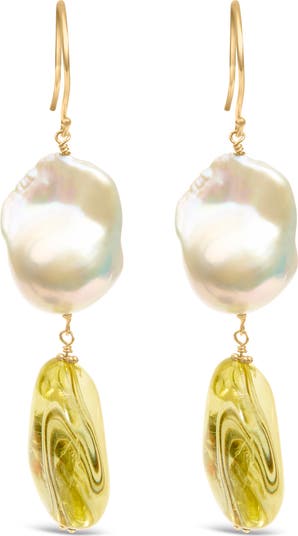 Haus of Brilliance 14K Yellow Gold Citrine and Baroque Pearl Drop and Dangle Earrings, Alternate, color, Yellow