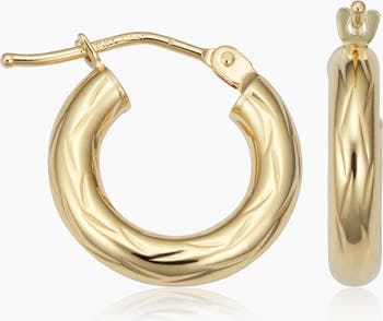 Day, Night and everything in between, these mini hoops are perfect for every occasion. The perfect size for everything and anything, the solid gold shine and hand done etching make for the perfect set.