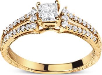 14K Yellow Gold Diamond 5/8 Cttw Diamond Split Shank and Milgrain Engagement Ring