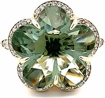14K Yellow Gold Diamond and Green Amethyst Flower Ring