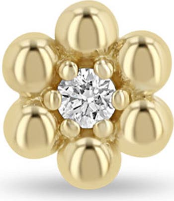 14K Yellow Gold Diamond Beaded Flower Single Stud Earring