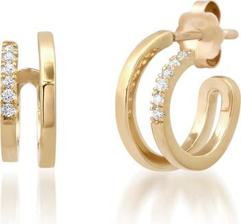 14K Yellow Gold & Diamond Double Huggie Earrings