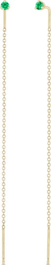 Prong-set round emeralds anchor the dainty chains of these ultramodern threader earrings crafted from warm 14-karat yellow gold.