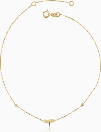 Like the dragonfly, our Flora Anklet is filled with effortless beauty and elegance. Two gold dots sit on either side of a single gold dragonfly that was inspired by its namesake, the Ancient Roman goddess of flowers and nature.
