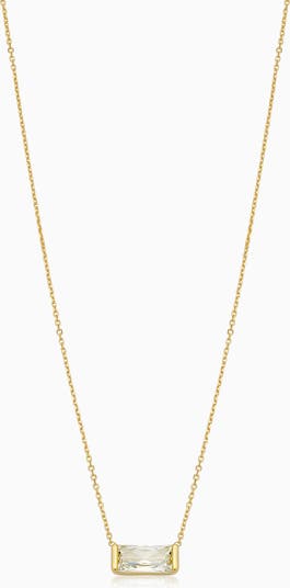 Our Fresco Baguette Pendant Necklace is the pop of sophistication you need this season! Classic, yet modern, it features a floating cubic zirconia stone enrobed in 14k solid gold.