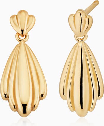 Step into elegance with our Galleria Drop Earrings. These 14k solid gold beauties feature a stunning fluted design, creating an eye-catching silhouette that dances with every move. Inspired by the Galleria de Vittorio in Milan, they add class and charm to any look.