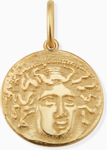 Our Greek Medusa Pendant Charm features the fierce head of Medusa, which is a warning to others that you are not to be crossed. Let this solid gold coin piece bring you Medusa-level confidence all day, every day.