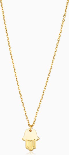 Our gold Hamsa Pendant Necklace is the symbol of protection and is said to offer happiness, health and luck to those who wear it. This dainty piece is as striking on its own as it is layered with other chains.