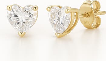 Elevate your jewelry collection with these refined 14K yellow gold heart earrings. Each piece features a delicate heart-cut stone, certified with an authentic 14K stamp for guaranteed quality. The secure butterfly backings ensure your earrings stay perfectly in place throughout the day. At 5MM, these understated yet elegant studs offer versatile styling for both everyday wear and special occasions. A timeless addition to any sophisticated wardrobe.