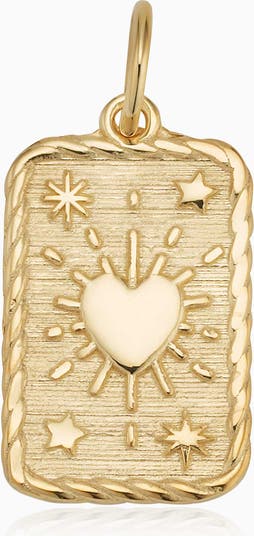 A luxurious blend of elegance and symbolic allure, our It's Love Pendant Charm will illuminate your style. Featuring a hand stamped heartburst, stars, and a delicately ribbed edging, it's the perfect piece to add style to your collection. Model imaged with Rimini Rolo Split Necklace and Connector Clasp (not included).