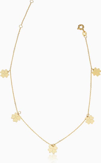 Five solid gold four-leaf clover charms dangle from our Lucky You Anklet. We hope this anklet brings you good fortune, but we guarantee it will bring you envy-worthy shine.