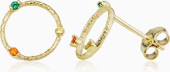 Orange, green and white sparkling cubic zirconia stones line the rim of our Circus Ring Studs. These solid gold gemstone earrings are minimalist enough to be worn daily while offering a hint of fun personality.