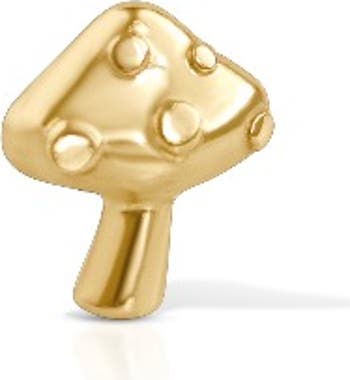 Whether you're into chanterelles or the magic kind, this 14K gold mushroom stud adds a little fungi fun to your stack. Sold as a single so you can mix and match, we love it in a second or third piercing next to your favorite everyday studs. Sold individually Solid 14K Yellow Gold Handmade in Los Angeles Dimensions: 5mm H × 6mm W