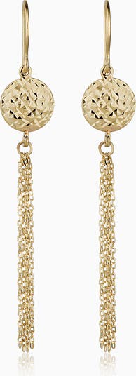 Add more sparkle to your style with our solid gold Naples Drop Earrings. Designed with shimmering tassels that hang from eye-catching geometric discs, these earrings are sure to turn a few heads.