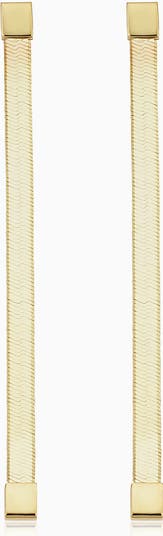 There's no stopping you in our Park Avenue Herringbone Drop Earrings. Long, flat herringbone chains are capped on either end by solid gold squares, creating dramatic shine and movement at every turn.