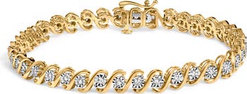14K Yellow Gold Plated .925 Sterling Silver 1/2 Cttw Round Miracle-Set Diamond S-Curve Tennis Bracelet