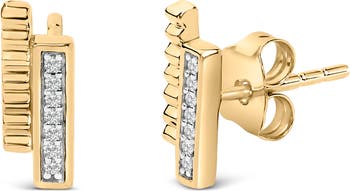 14k Yellow Gold Plated .925 Sterling Silver Diamond Accent Bar Stud Earrings