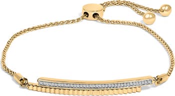 Haus of Brilliance 14K Yellow Gold Plated .925 Sterling Silver Diamond Accent Double Bar Bolo Bracelet, Main, color, Yellow
