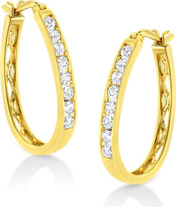 14k Yellow Gold Plated Silver 1.0 Ct Channel Diamond Hoop Earrings