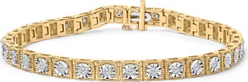 14K Yellow Gold Plated Silver 1.0 Cttw Diamond Milgrain Link Tennis Bracelet