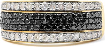 Haus of Brilliance 14K Yellow Gold Plated Silver 1 1/4 Cttw White and Black Diamond Multi Row Band, Main, color, Yellow Gold Over Silver