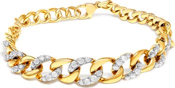 Immerse yourself in the sophisticated allure of this exquisite bracelet, where classic elegance converges with contemporary flair. Meticulously crafted from .925 sterling silver and lavishly plated in radiant 14K yellow gold, this stunning piece features the iconic Cuban chain link design. Each link cradles a shimmering natural diamond, summing up to a dazzling 1 1/4 carats. The diamonds, with an I-J color and I3 clarity, beautifully catch and reflect the light, ensuring that every gesture you make is underscored with a captivating sparkle. A robust lobster claw clasp seamlessly secures the bracelet, which is perfectly sized at 7.25 inches to grace your wrist with an impeccable fit. This bracelet is not just a piece of jewelry; it is a testament to luxurious durability and an invitation to adorn your life with perpetual elegance.
