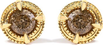 14K Yellow Gold Plated Silver 1/2 Ct Diamond Solitaire Milgrain Stud Earrings