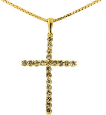 14K Yellow Gold Plated Silver 1/2 Cttw Champagne Diamond Cross Pendant Necklace
