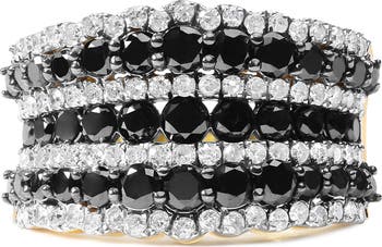 14K Yellow Gold Plated Silver 1 3/4 Cttw Black and White Diamond Multi Row Band Ring