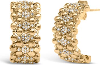 Haus of Brilliance 14K Yellow Gold Plated Silver 1/3 Cttw Diamond and Ball Bead J Hoop Earrings, Main, color, Yellow