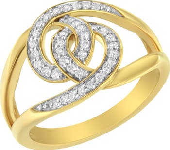 14K Yellow Gold Plated Silver 1/4 Cttw Diamond Interlocking Loop Open Shank Bypass Ring