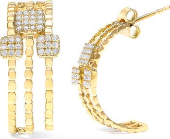 14K Yellow Gold Plated Silver 1/4 Cttw Diamond Link Dangle Stud Earrings