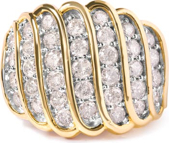 14K Yellow Gold Plated Silver 2.00 Cttw Diamond Multi Row Band Ring