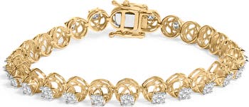 14K Yellow Gold Plated Silver 3 9/10 Cttw Diamond Buttercup Style Tennis Bracelet