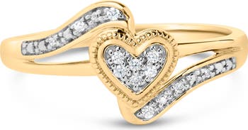 14K Yellow Gold Plated Silver Diamond Accent Filigree Heart Promise Ring